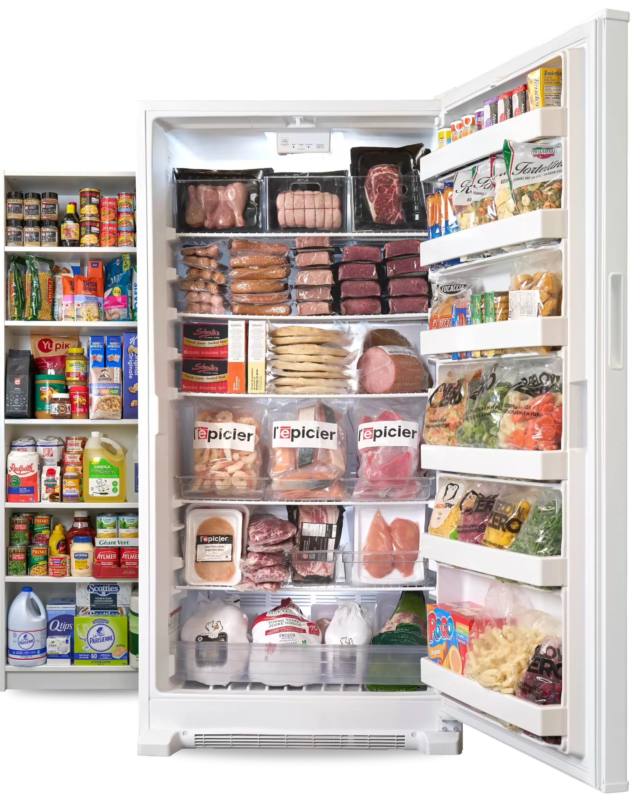 Grâce à notre service d’épicerie à domicile, vous profiterez d’une alimentation de première qualité, d’aliments du Québec, de produits d’épicerie, de viandes, de poissons et de fruits de mer en tout temps. Voilà la meilleure solution pour avoir l’esprit tranquille, avec un garde-manger et un congélateur toujours pleins. Tous nos forfaits sont adaptables à votre situation familiale.