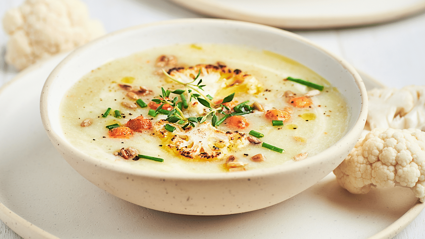 Cette soupe crémeuse et légèrement sucrée combine le chou-fleur et les pommes avec une touche de cari. Un mélange surprenant qui plaira à tous!