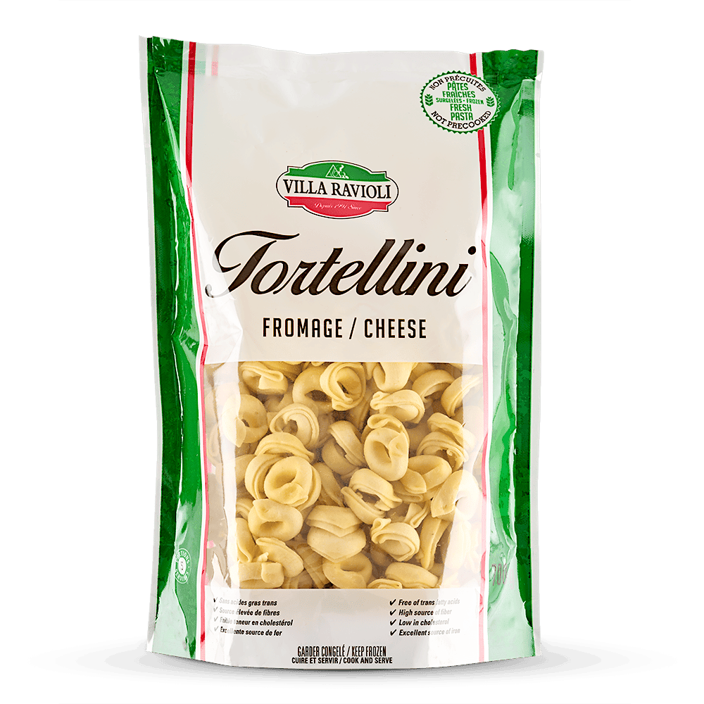 Les tortellini au fromage Villa Ravioli séduisent par leur forme et leur goût. Farcis de ricotta crémeuse et de fromage romano affiné, ils offrent une bouchée tendre et savoureuse. Sans gras trans, source de fibres, faibles en gras saturés et en cholestérol, ils allient plaisir et équilibre.
